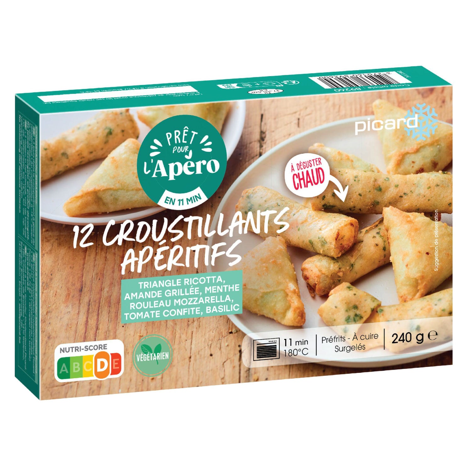 ロール状の包みにはモッツァレラチーズとトマトのコンフィ、三角形の包みにはリコッタ、ズッキーニとアーモンドが入ったアペリティフです。風味豊かな2種類のチーズとサクサクとした食感のアペリティフをお楽しみください。