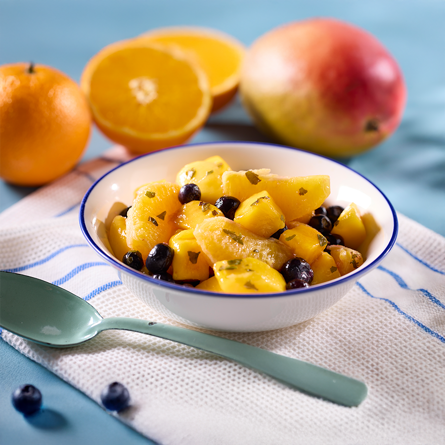 BIO フルーツサラダ(マンゴー、オレンジ、ブルーベリー)