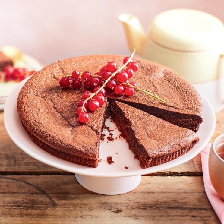フランス産の原料にこだわり、添加物を加えずに仕上げた滑らかで濃厚なチョコレートケーキです。電子レンジで簡単に、または、オーブンで表面をさっくり仕上げても美味しくお召し上がりいただけます。