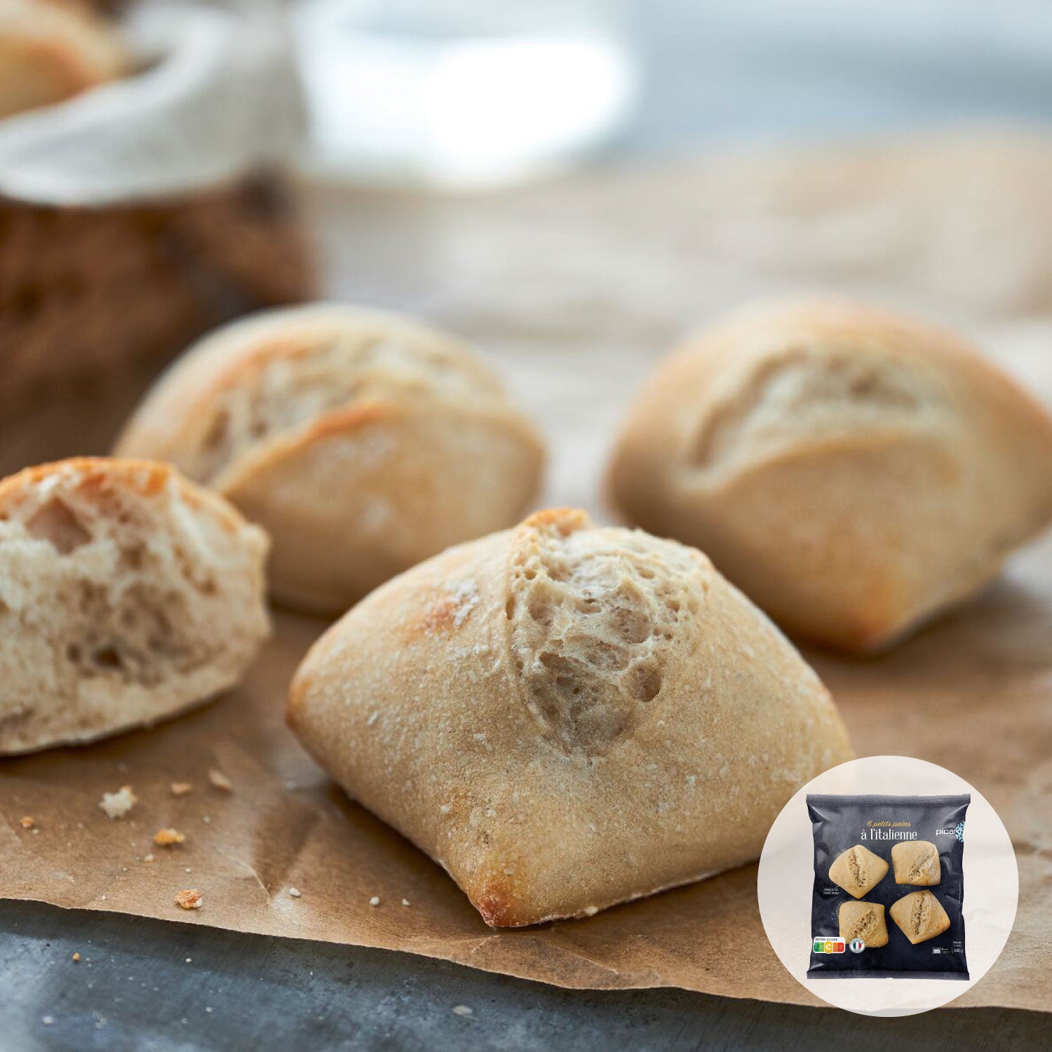 パリッとしたクラストと柔らかい内側のクラム、粉をまとった四角いフォルムが特徴の、素朴なイタリアン・スタイルのミニパンです。食事パンとして、また具材を挟んだミニサンドイッチにしても。
