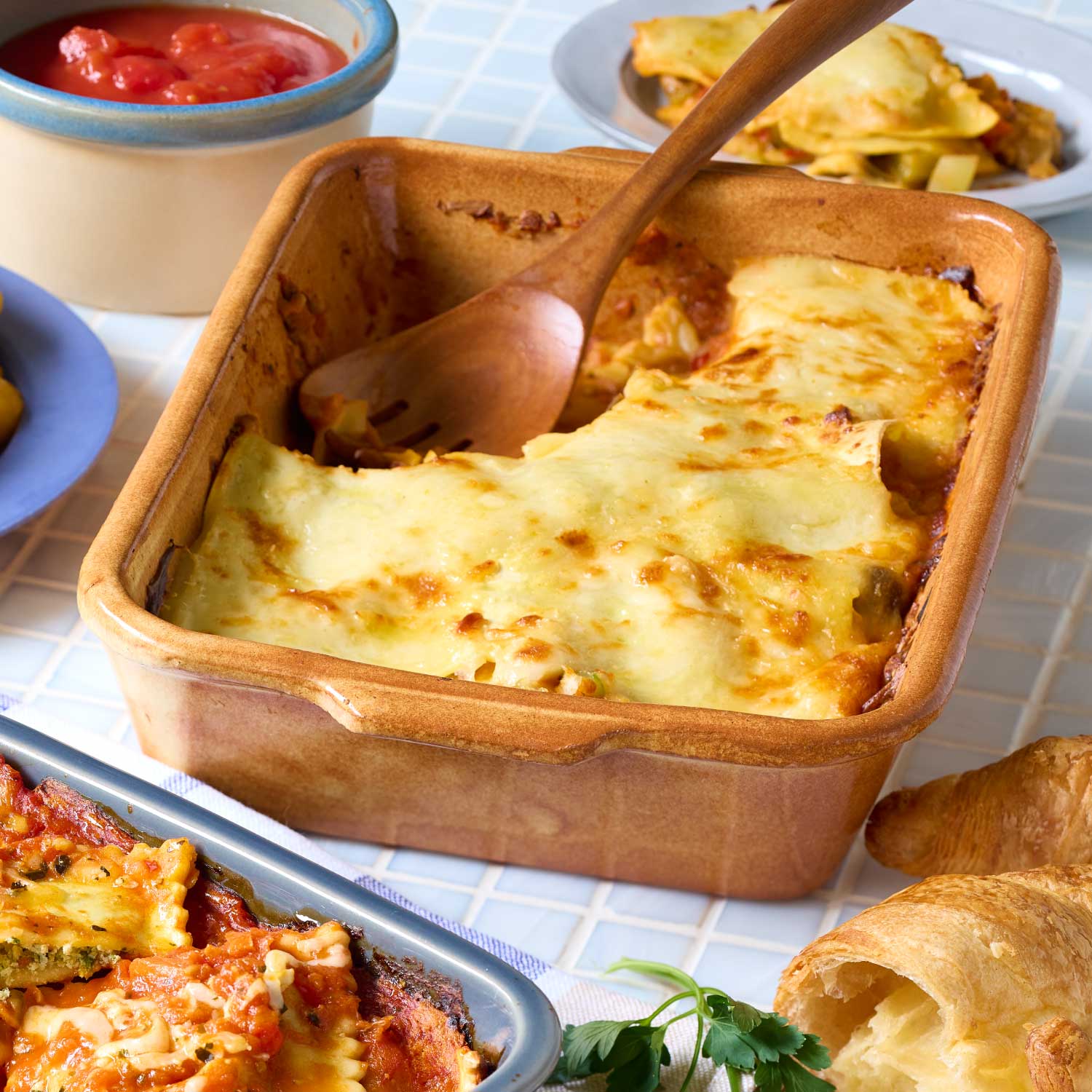 ズッキーニやナス、パプリカなど彩り豊かな野菜をたっぷり使い、モッツァレラチーズとエメンタールチーズを合わせてとろけるように仕上げたラザニアです。野菜の自然な甘みとチーズのまろやかなコクが口の中でほどけ、あっさりしながらも満足感のある味わいを楽しめます。