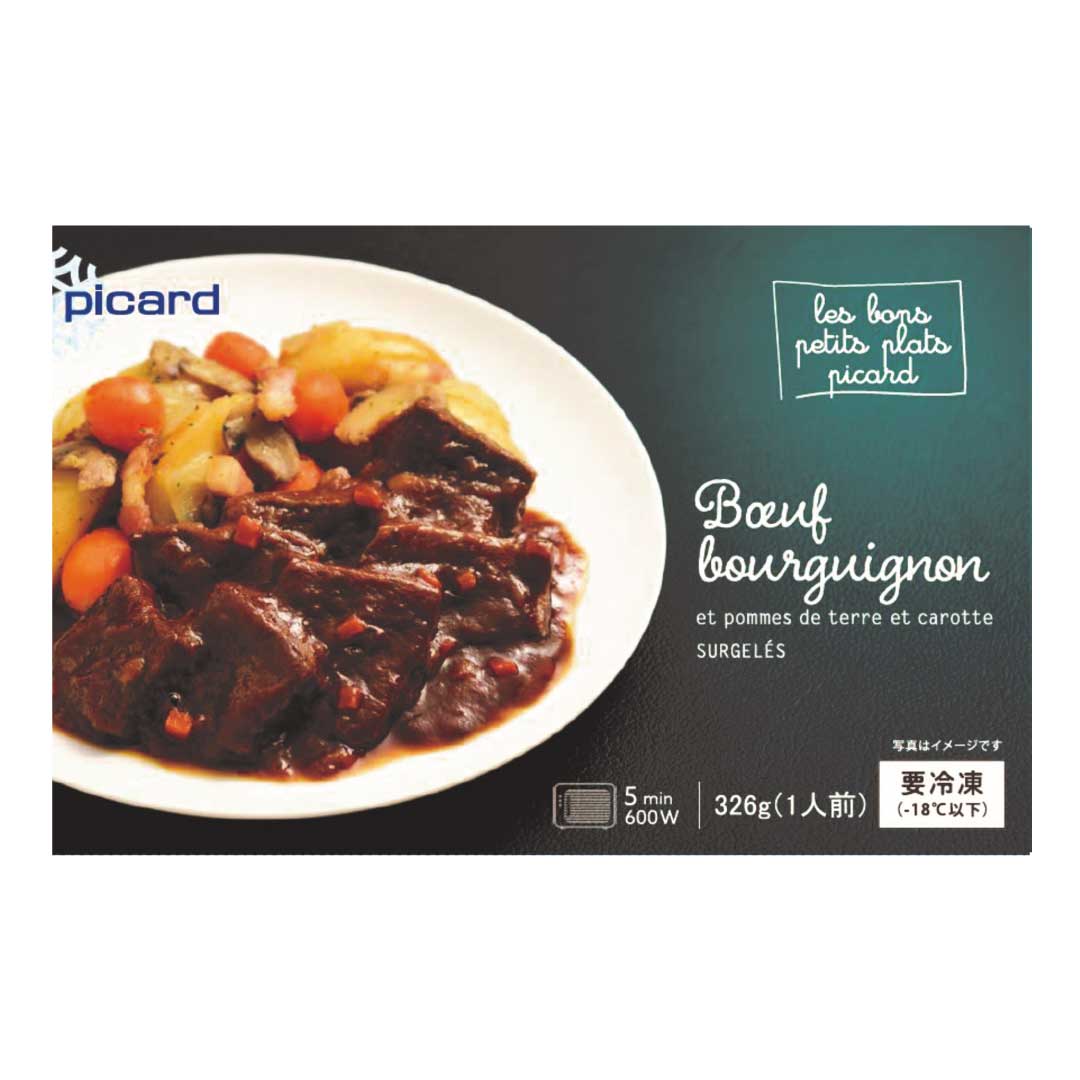 牛肉(オーストラリア産)、ばれいしょ、ブイヨン、玉ねぎ、果実酒、マッシュルーム、にんじん、植物油脂、バター、ベーコン、トマトピューレー、トマトペースト、はちみつ、ホワイトルウ、砂糖、食塩、にんにく、香辛料/発色剤(亜硝酸Na)、酸化防止剤(V.C)、酸味料、着色料(アントシアニン)、(一部に小麦・乳成分・牛肉・鶏肉・豚肉を含む)
