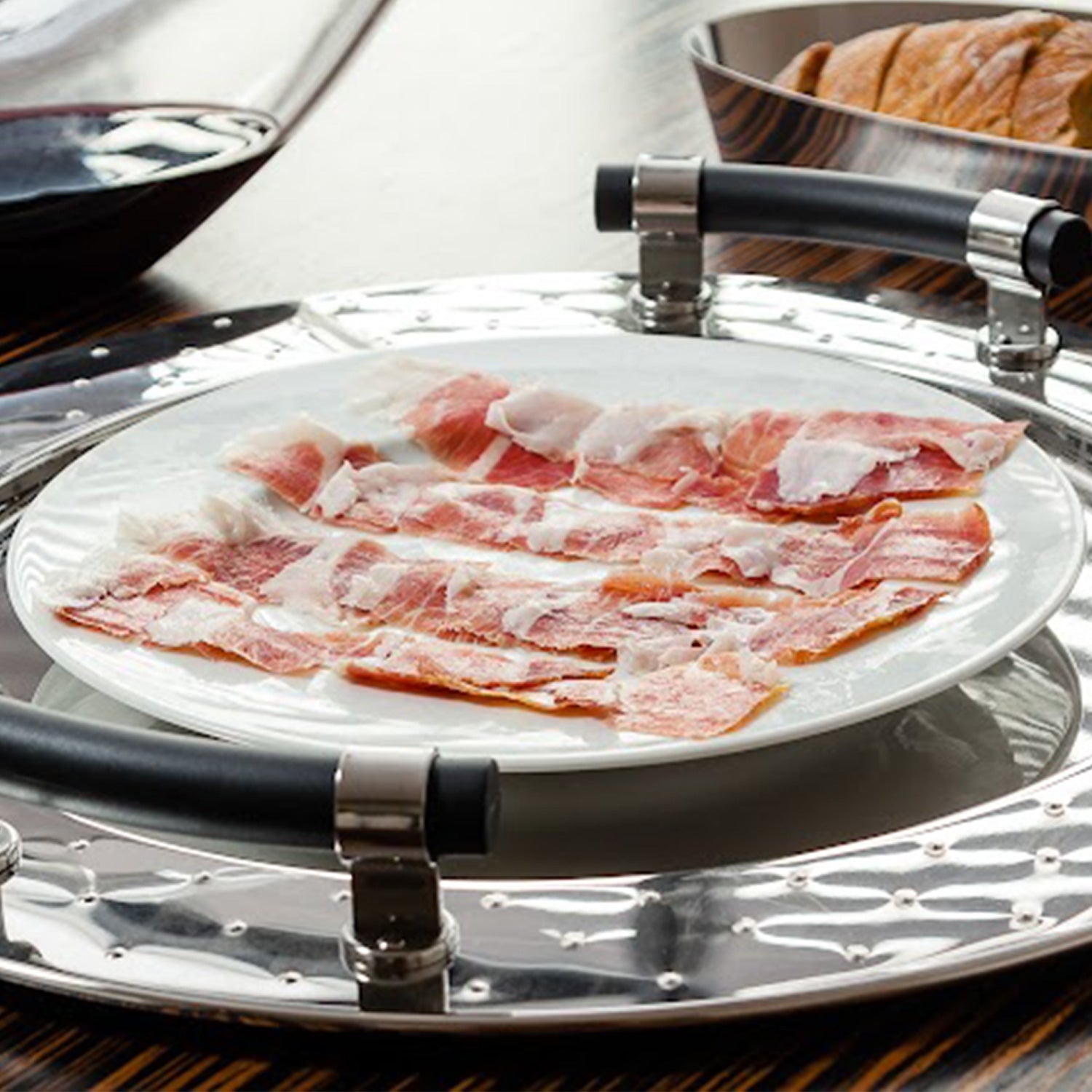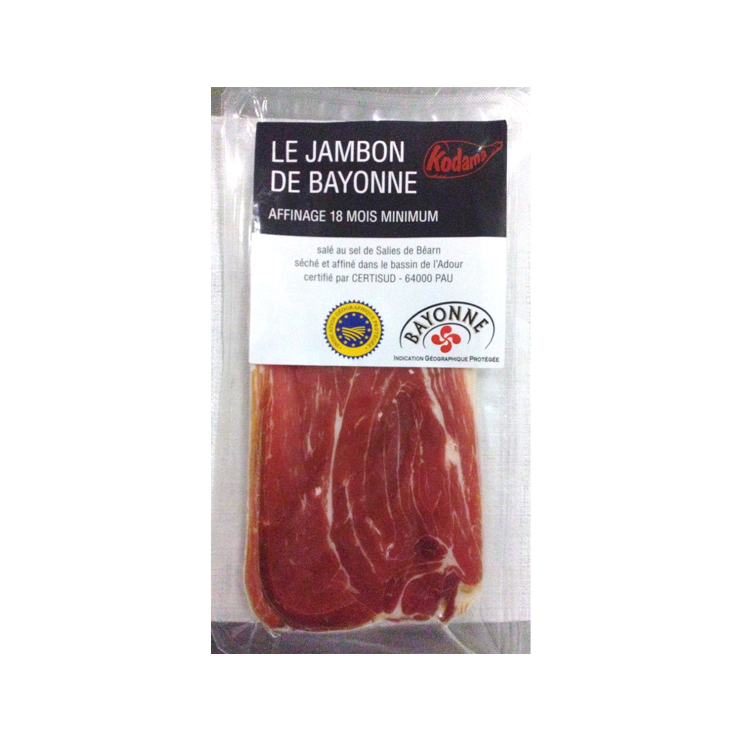 スペインとの国境が走るピレネー山脈の麓、フランス バイヨンヌの限定地域で生産され、IGP(保護指定地域表示)認証を持つ伝統的な生ハムです。 塩味が効いた赤身が特徴で、噛みしめると繊細な熟成香が口中に広がります。