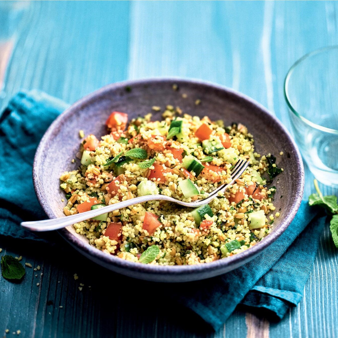 調理済みヒトツブ小麦、きゅうり、クスクス(デュラム小麦のセモリナ)、トマト、植物油脂、レモン果汁、玉ねぎ、ねぎ、パセリ、ミント、濃縮オレンジ果汁、ライム果汁、食塩、にんにくピューレ、香辛料