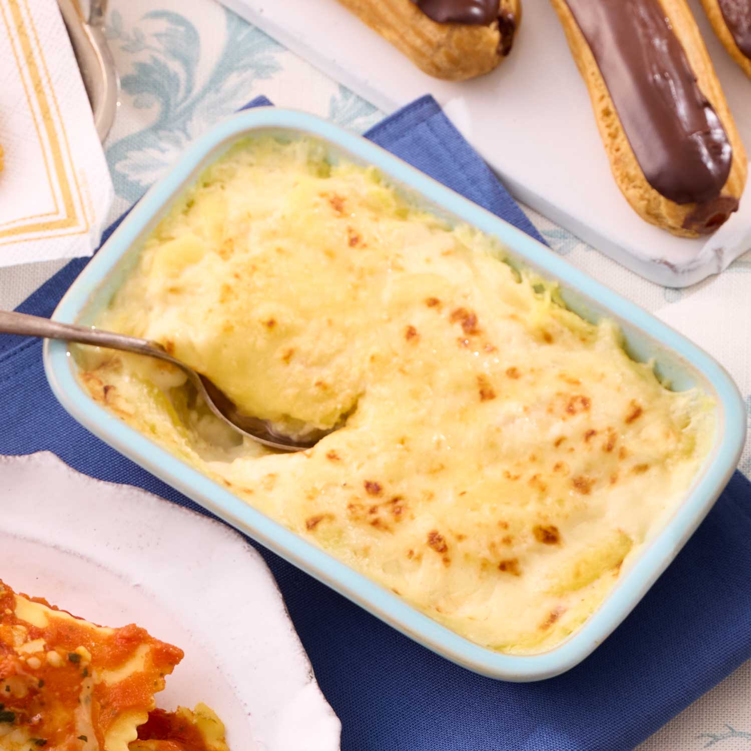 柔らかく煮たジャガイモにチーズとホワイトソースが絡み、にんにくの風味が効いた味わい深い一品。シンプルながら、食卓を豊かにしてくれるグラタンです。