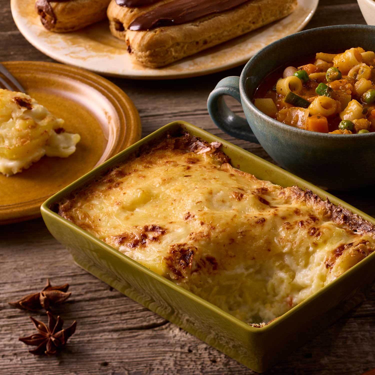 フランス南東部ドーフィネ地方の郷土料理「グラタン・ドフィノワ」をベースにしており、家庭で愛されてきた素朴な味わいをお楽しみいただけます。ドーフィネ地方は乳牛の放牧が盛んで、バターや生クリーム、チーズなどの乳製品が豊富に生産される地域。長い冬を越すために、ジャガイモやタマネギは欠かせない食材でした。