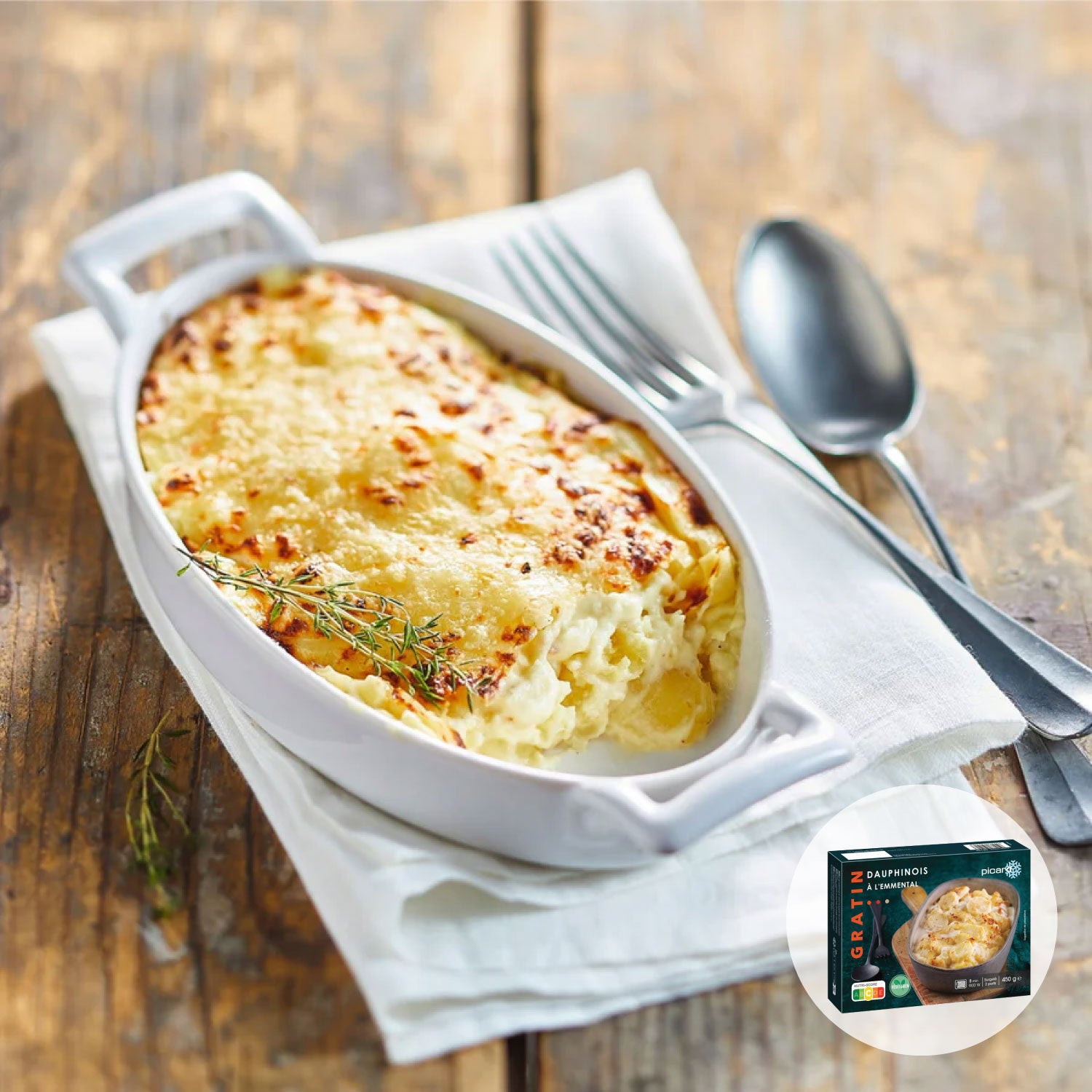 ホワイトソースにエメンタルチーズを加えたソースで輪切りのポテトを柔らかく煮た、ポテトのクリームグラタンです。