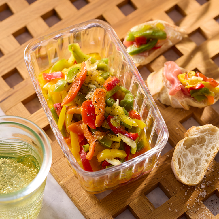 赤、緑、黄色のパプリカの千切りミックスです。 炒め物からサラダまで美味しく、彩よく。 サッとソテーしたり、電子レンジで温めて簡単にお弁当に加える一品が出来上がります。