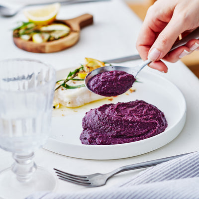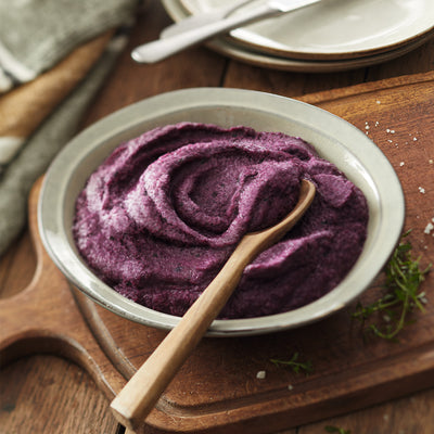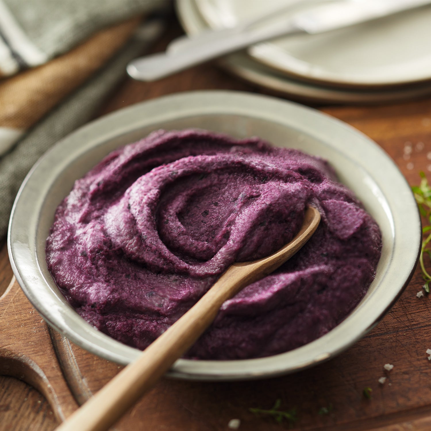 紫と黄の2種のにんじんに、なめらかなジャガイモを合わせた彩り豊かなピューレが登場しました。